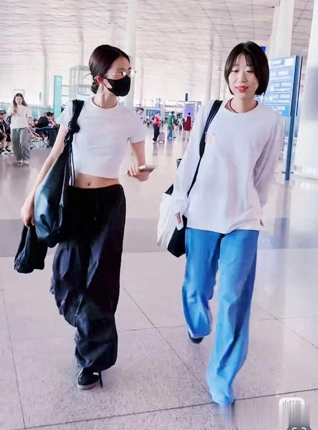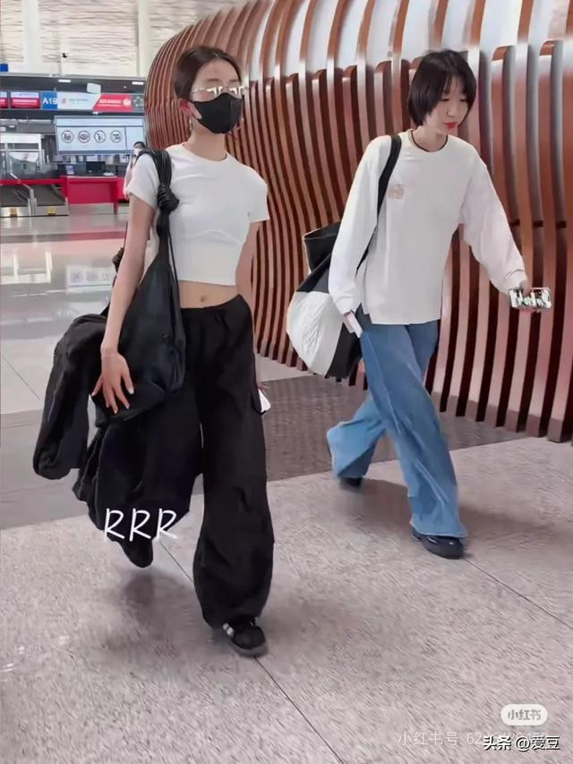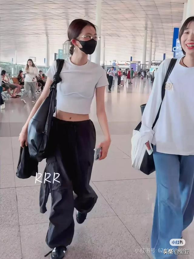 黄多多去支持爸爸话剧 穿露脐白T露小蛮腰满满女团风 大步行走好飒